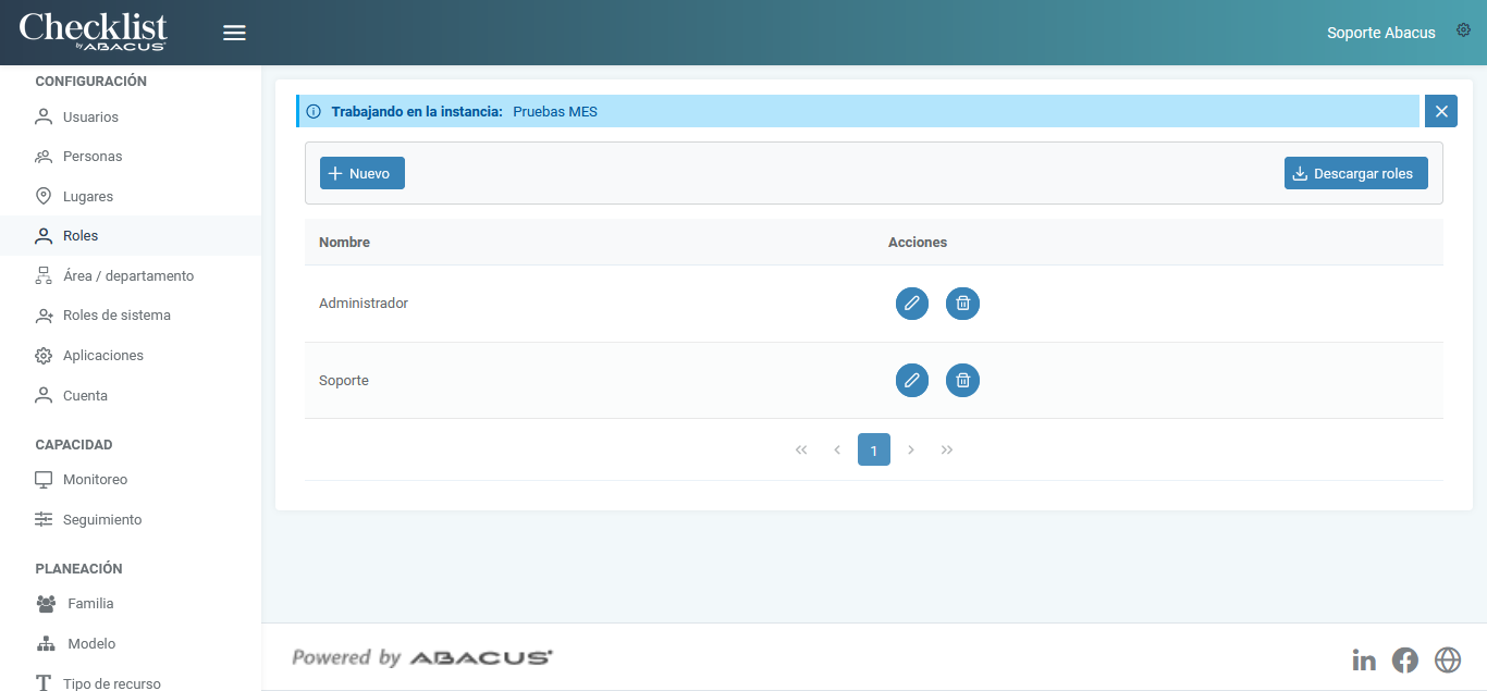 En esta sección veremos los roles de la instancia en la que nos encontramos.